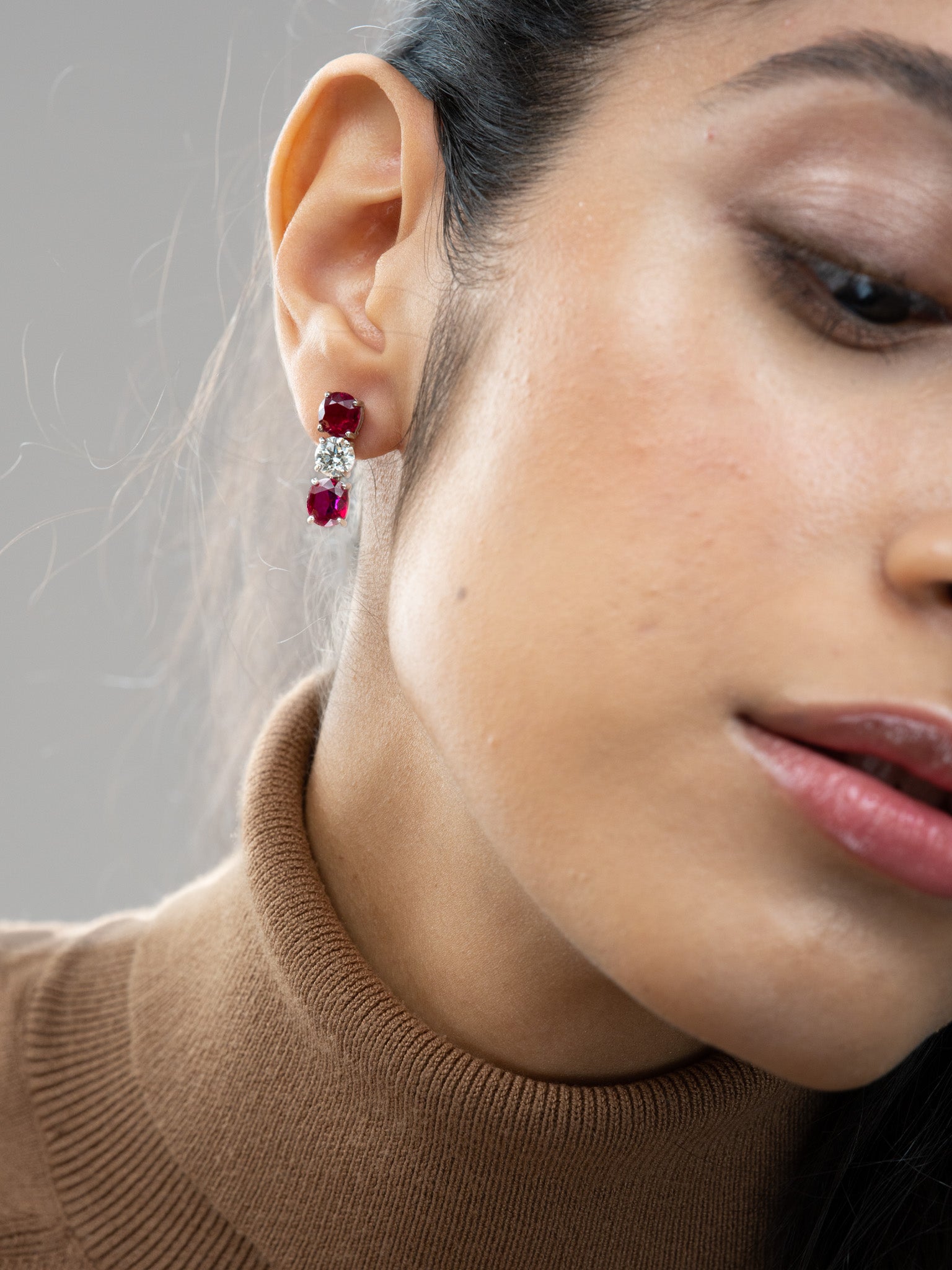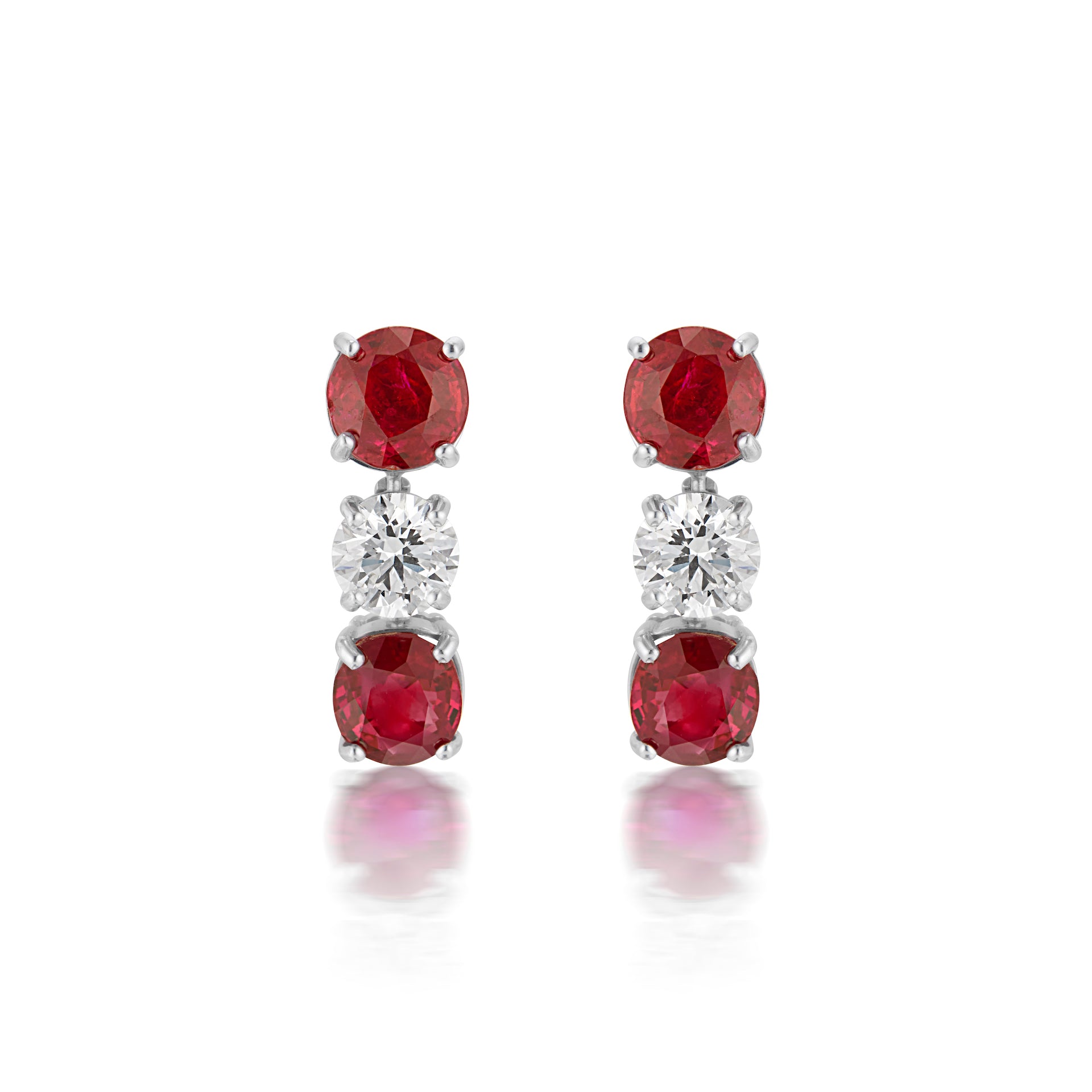 Each gemstone in this piece possesses a depth and vibrancy that captures the essence of their rare beauty. To accentuate the elegance of the Burmese rubies, two dazzling diamonds take center stage.