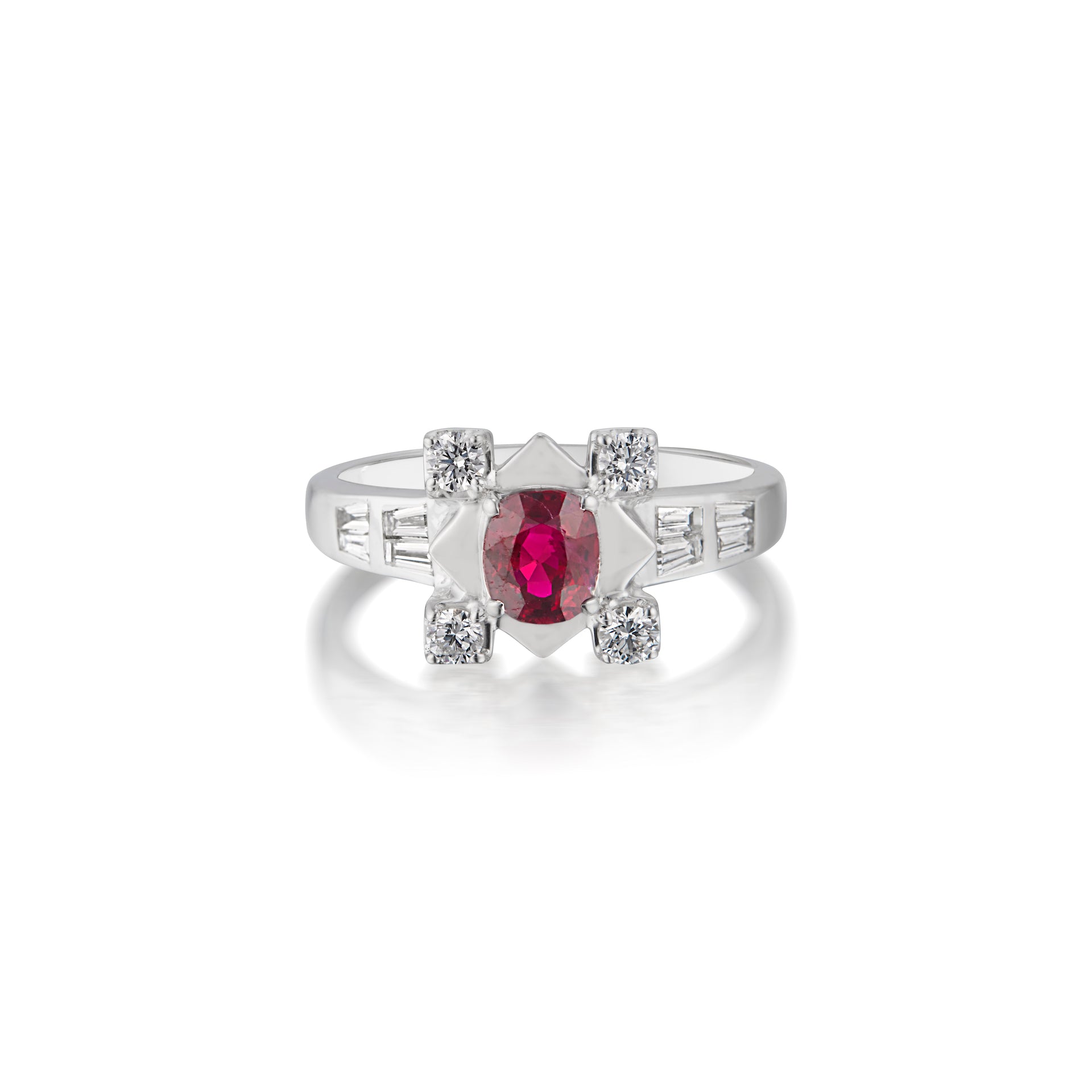Introducing our exquisite unisex ring with a unique design. This captivating piece features a stunning 0.82 carat Burma No-heat Ruby at its center, radiating with its vibrant red hue and exceptional quality. The ruby serves as the focal point, symbolizing strength and passion.
