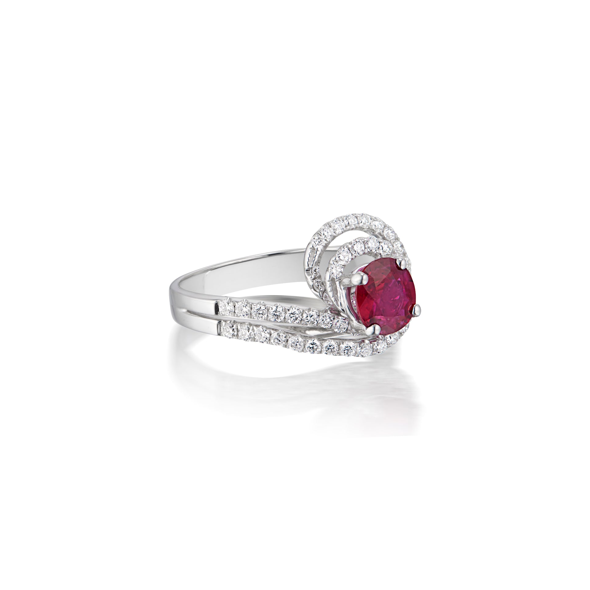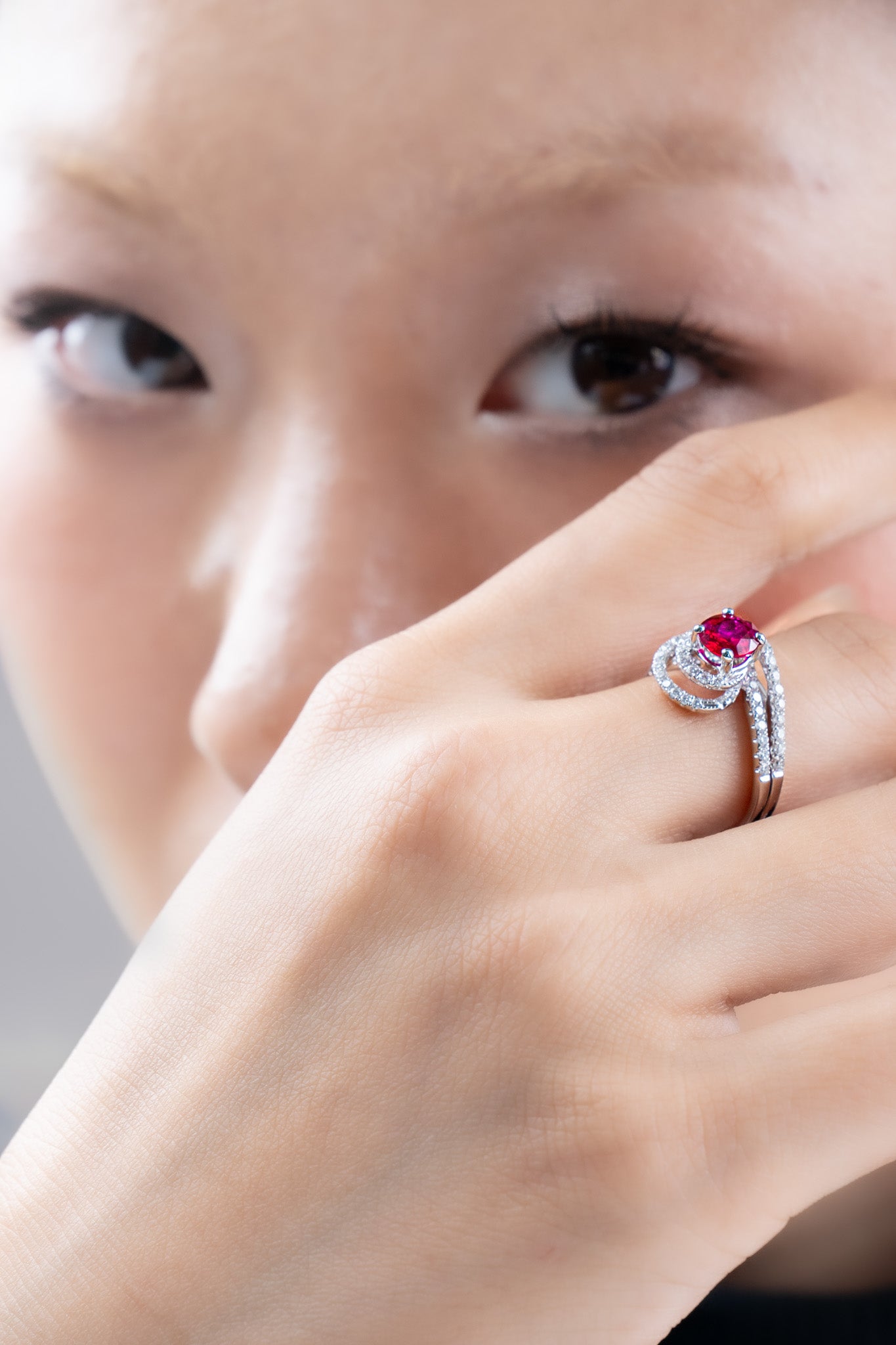 Introducing our captivating The Eternal Whirl Ring, featuring a captivating 1.07 carat Burma No-heat Ruby at its heart. The deep red ruby exudes passion and allure, enhanced by exceptional clarity.